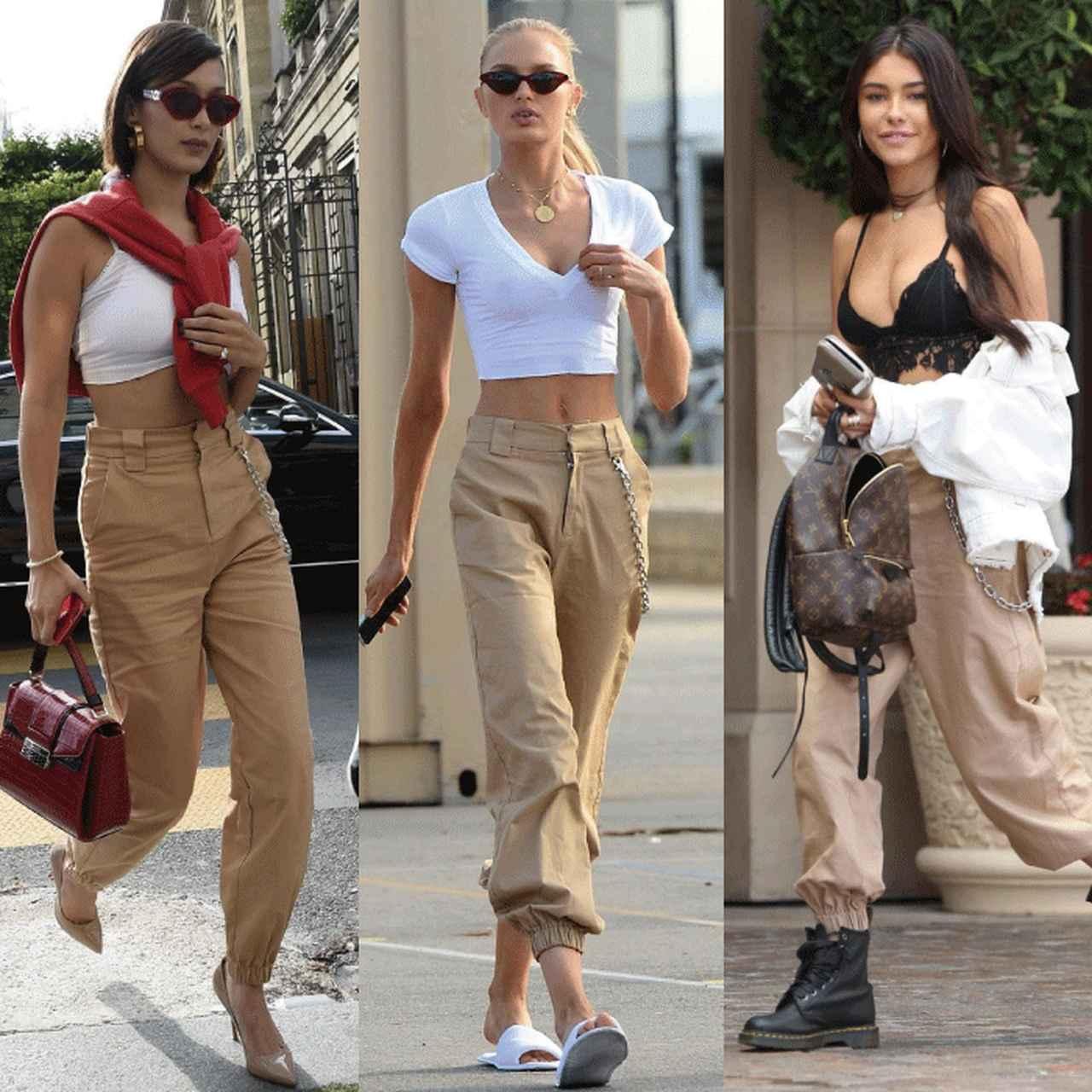 人気絶頂のモデル、ベラ・ハディッド(左)、人気ヴィクシーモデルのロミー・ストリド(中央)、人気シンガーのマディソン・ビアーが揃って愛用するのは、I.AM.GIAのカーゴパンツ。