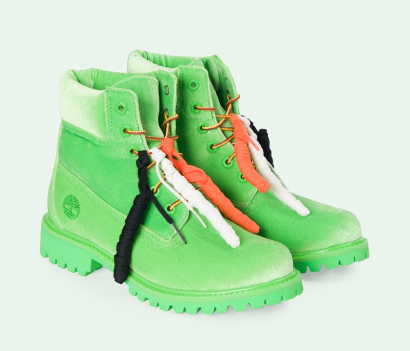 ティンバーランド×オフ・ホワイトのコラボブーツから新アイテムの発表があり、すでに争奪戦がおこっている。3月のリリースでは、これまでリリースされてきたブラックやキャメルのほか、注目はオフ・ホワイトらしい独創的なカラーリングのビビット・グリーン。