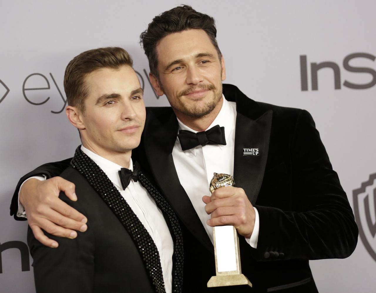 映画『ザ・ディザスター・アーティスト』で共演した弟で俳優のデイヴ・フランコと共にプレスルームに登場したジェームズ。