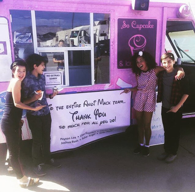 シーズン1の撮影中には、『アンディ・マック』の撮影スタッフにありがとうを伝えるために、カップケーキとアイスクリームをバンごと現場に差し入れ!