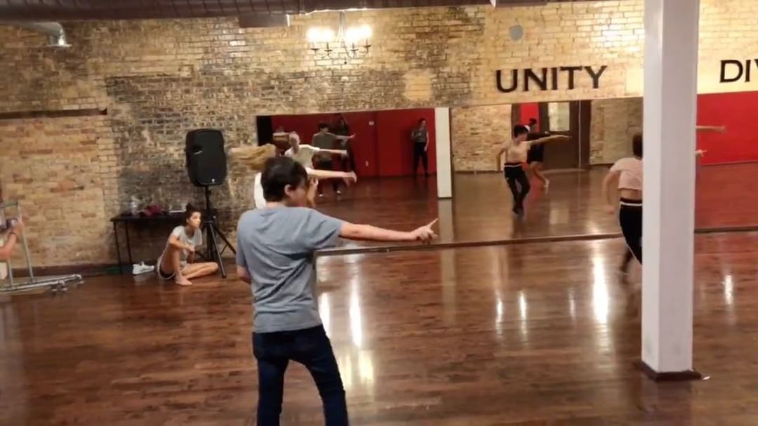 共演者のジョシュア・ラッシュとソフィア・ワイリーと一緒にダンスレッスンを受けた時には、ダンス経験者の美しいステップを披露(前方のピンク色トップスがペイトン)。