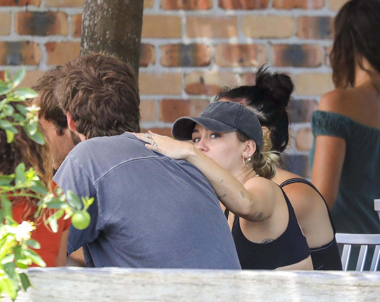 そんななかでもマイリーはセルフィーを撮ったり、薬指につけた指輪が輝く左手でリアムの背中をさすったりするなど、リラックスした様子で食事を楽しんでいた。