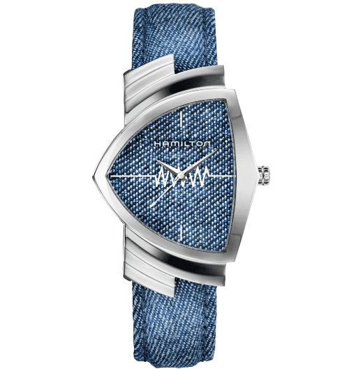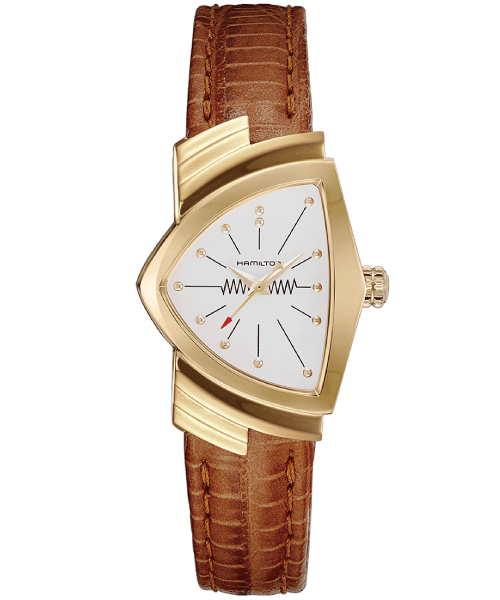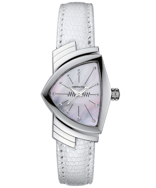 発売から60年たった今でも、他には無い独創的なデザインが支持されるハミルトンの「ベンチュラ」は、エルヴィス・プレスリーが映画『ブルーハワイ』の劇中で着用したことで知られている、ハミルトンの代表作。