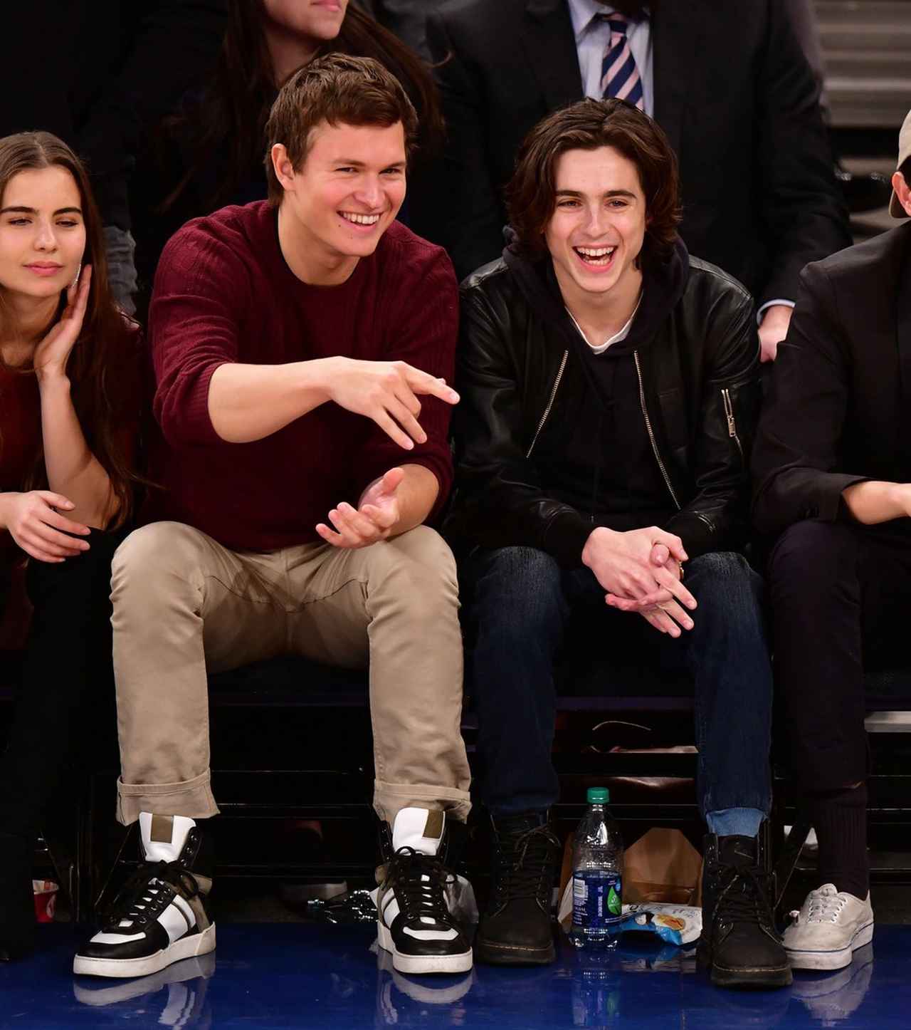 一緒にバスケ観戦を楽しんだアンセルとティモシー。アンセルは、同じバスケ部に所属し、同じ教師たちの元で学んだティモシーと、そろってゴールデン・グローブ賞にノミネートされた喜びを「人生ってクレイジーだ!」と語っていた。