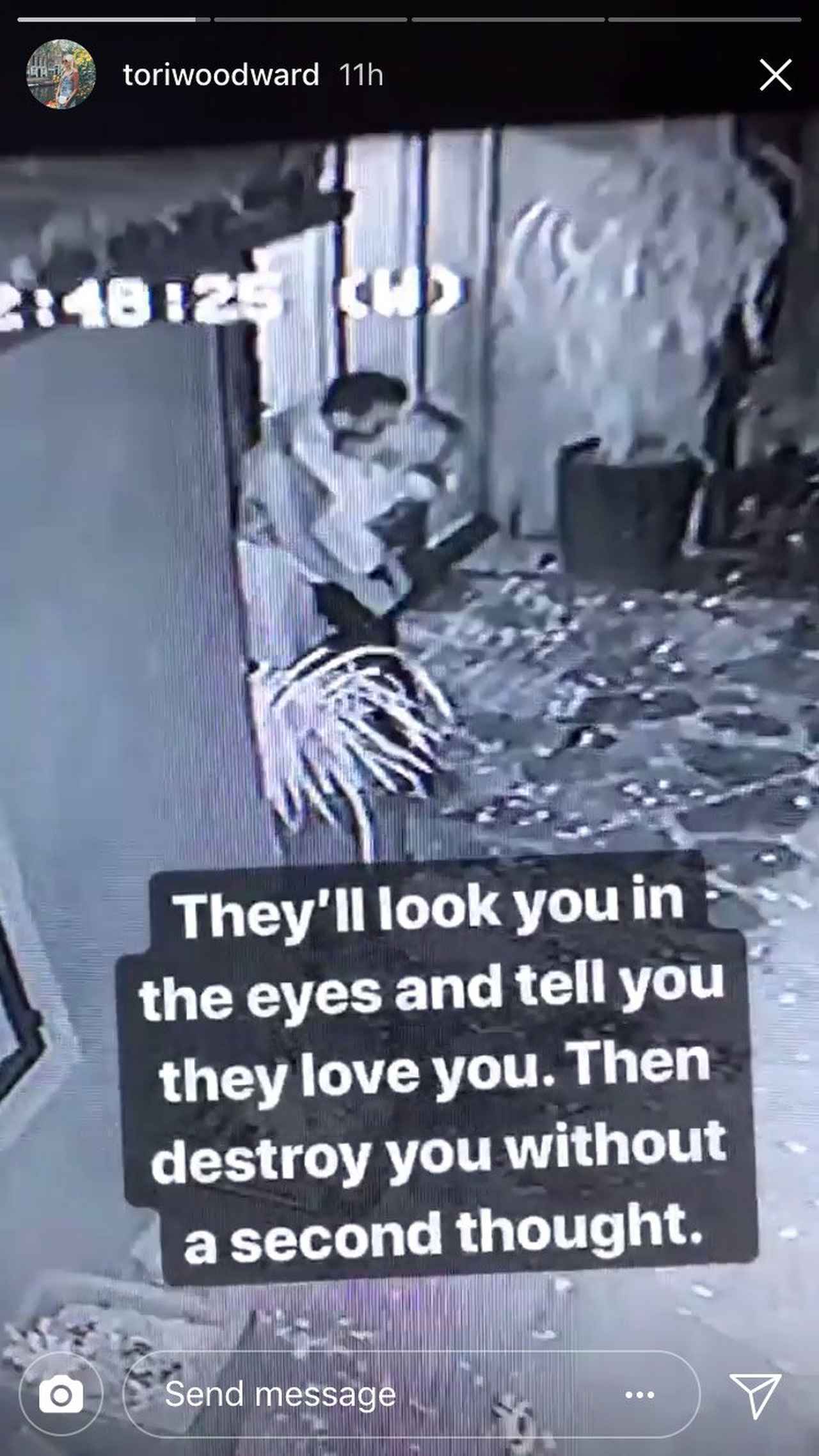 監視カメラの映像を写した画像には、トリではない女性とアレックスが濃厚なキスを交わす場面が収められており、トリはそれに対し「彼らはあなたの目を見て『愛してる』と言う。そしてその直後にあなたを破壊する」と憤りのコメント。