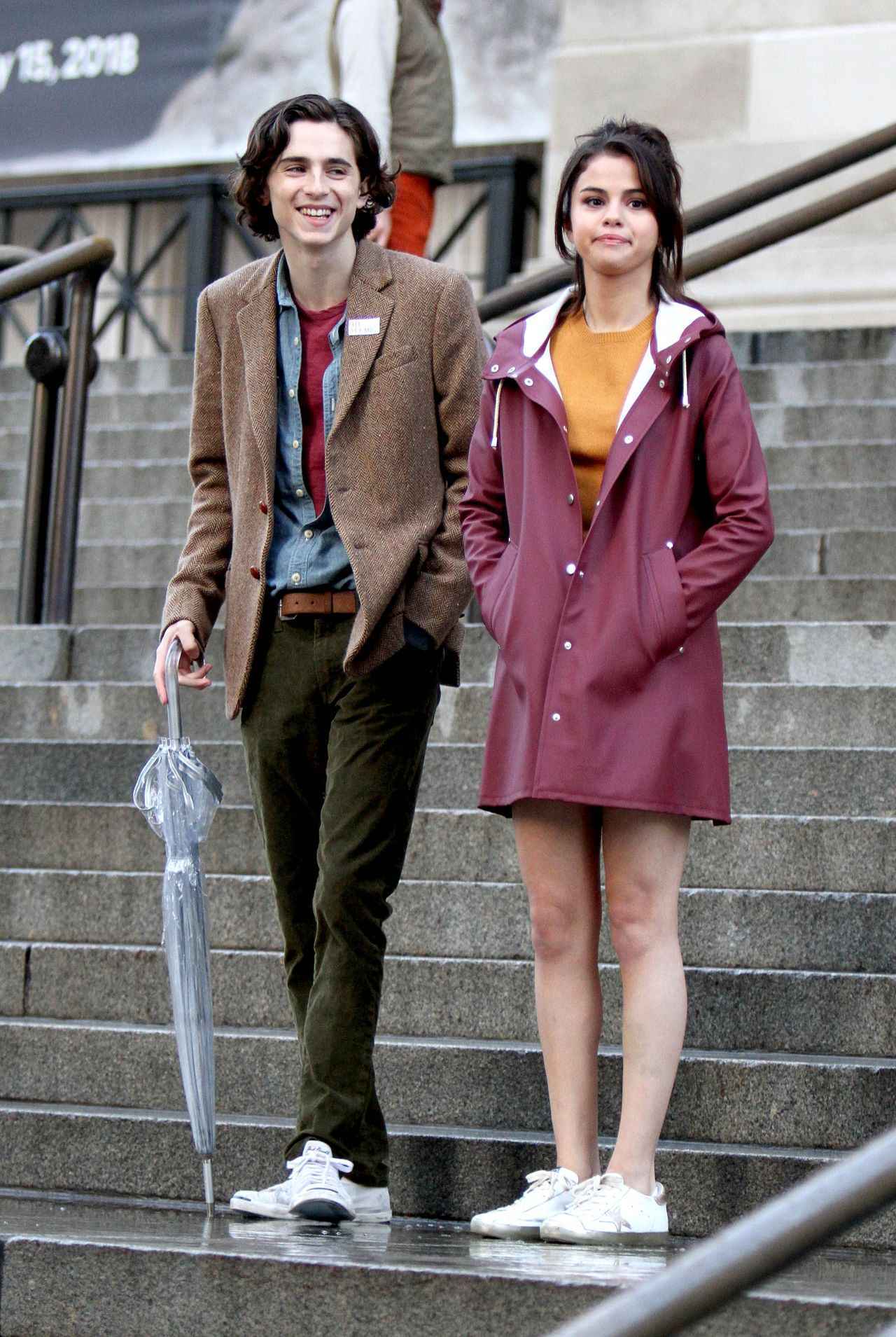 映画撮影中のティモシーとセレーナ。