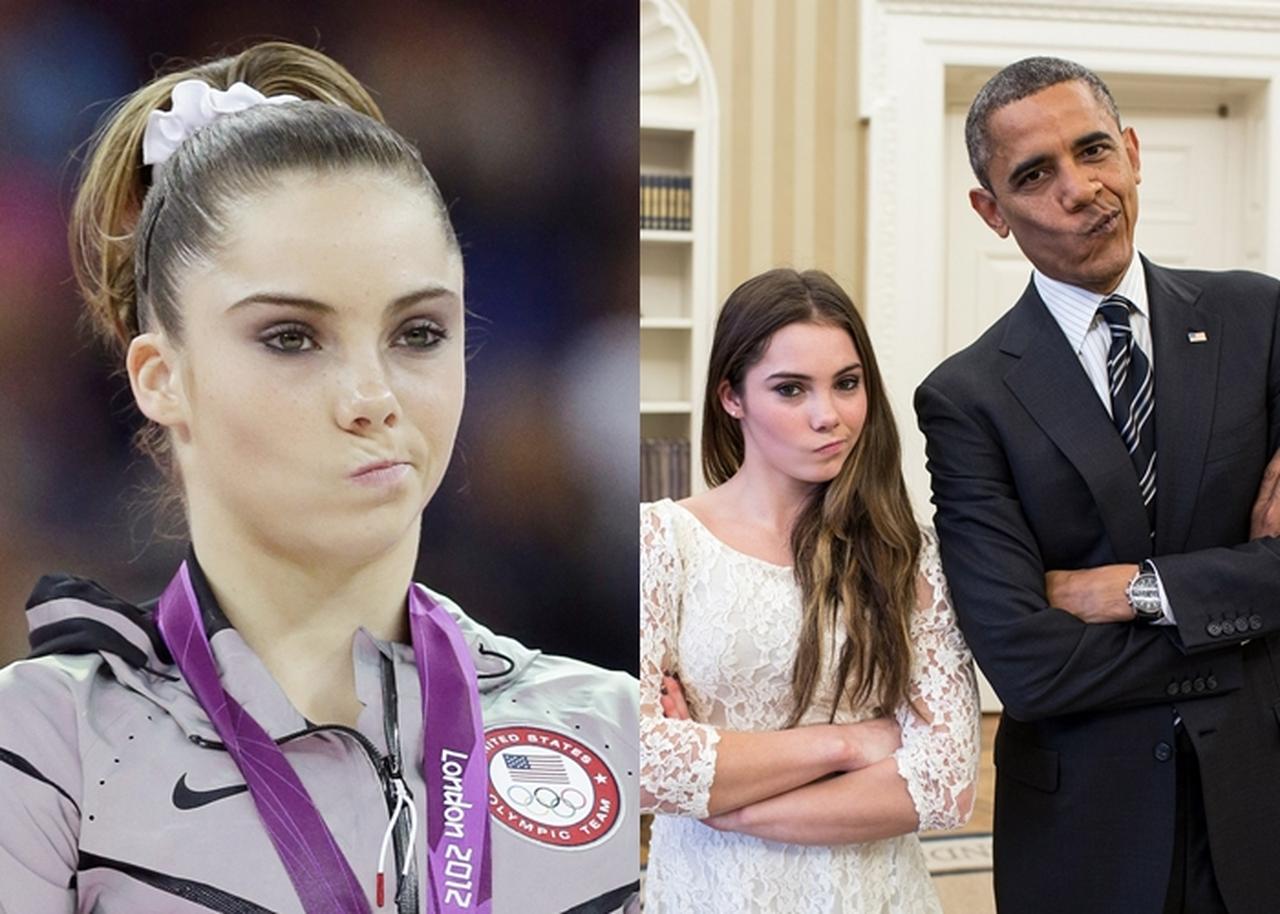 ロンドン五輪の表彰台で見せた「不満顔」が話題となったマッケイラ。ホワイトハウスでのオバマ元大統領との面会時には、2人でこの「不満顔」を再現したことも。