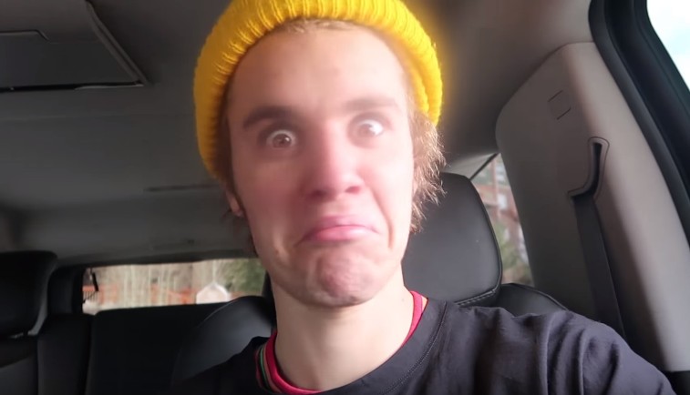 –カメラに向かって変顔を見せるジャスティン。©Christian Beadles/Youtube