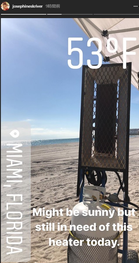 太陽の光が差すマイアミビーチでの撮影だったけれど、実はこの日の気温は最低気温が12度。