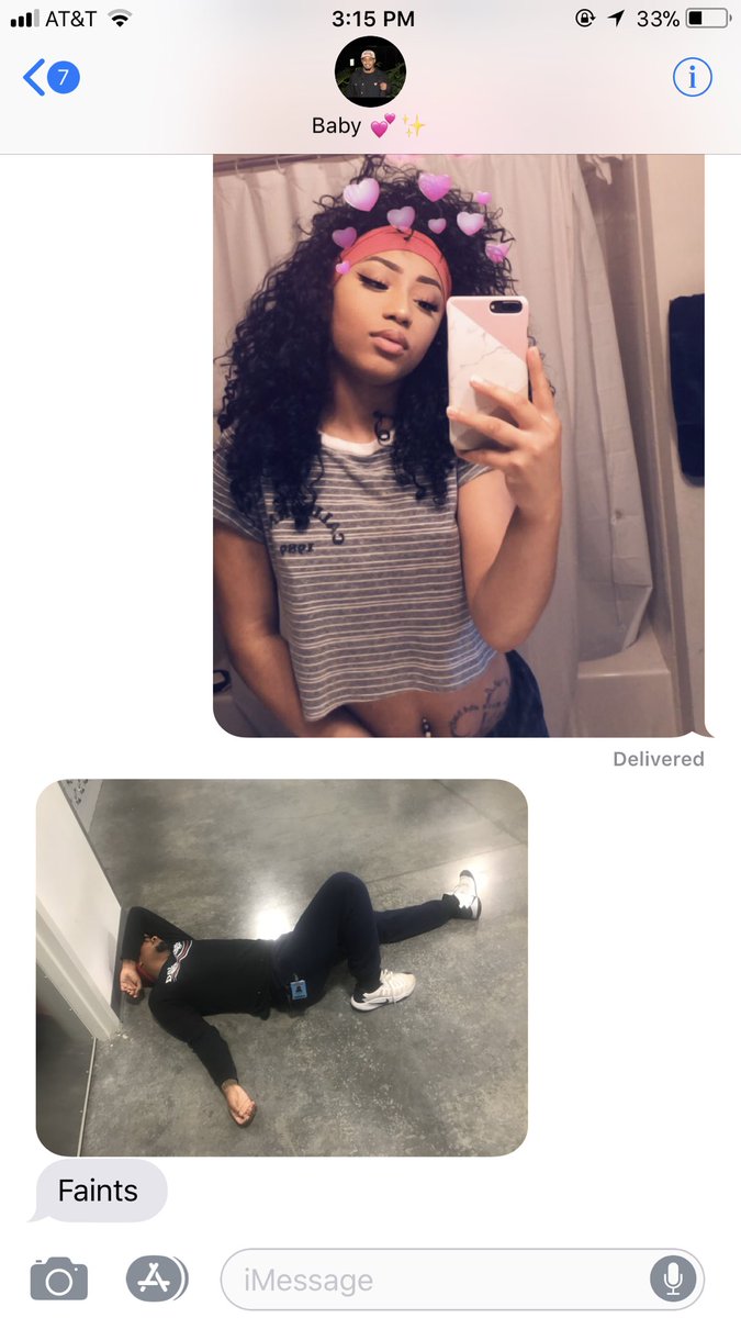 「アレクシアのホットな写真を見て気絶しちゃった」ということなのだろう。「Faints(気絶)」というコメントとともに、床に倒れこむ彼の写真が送られてきた。