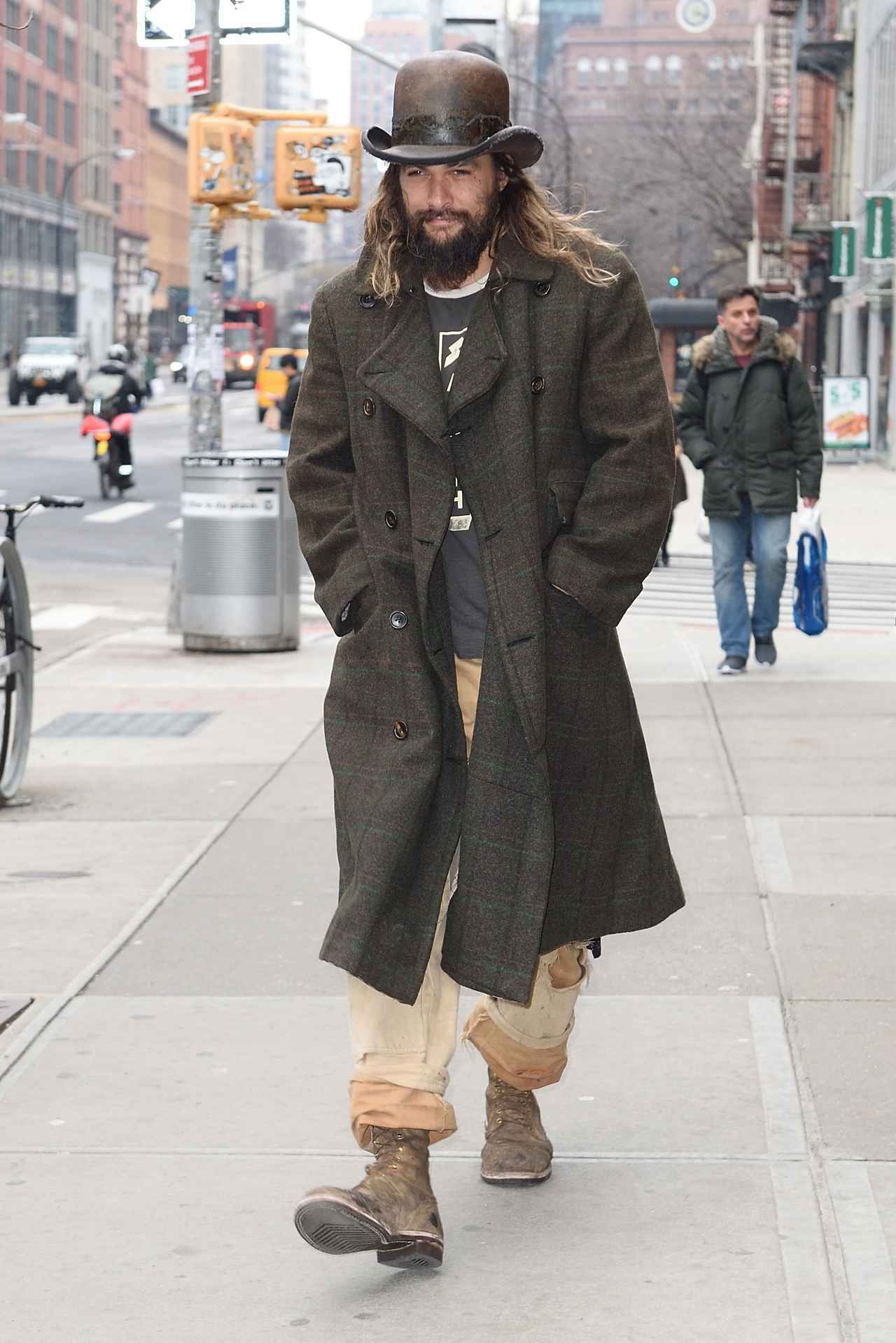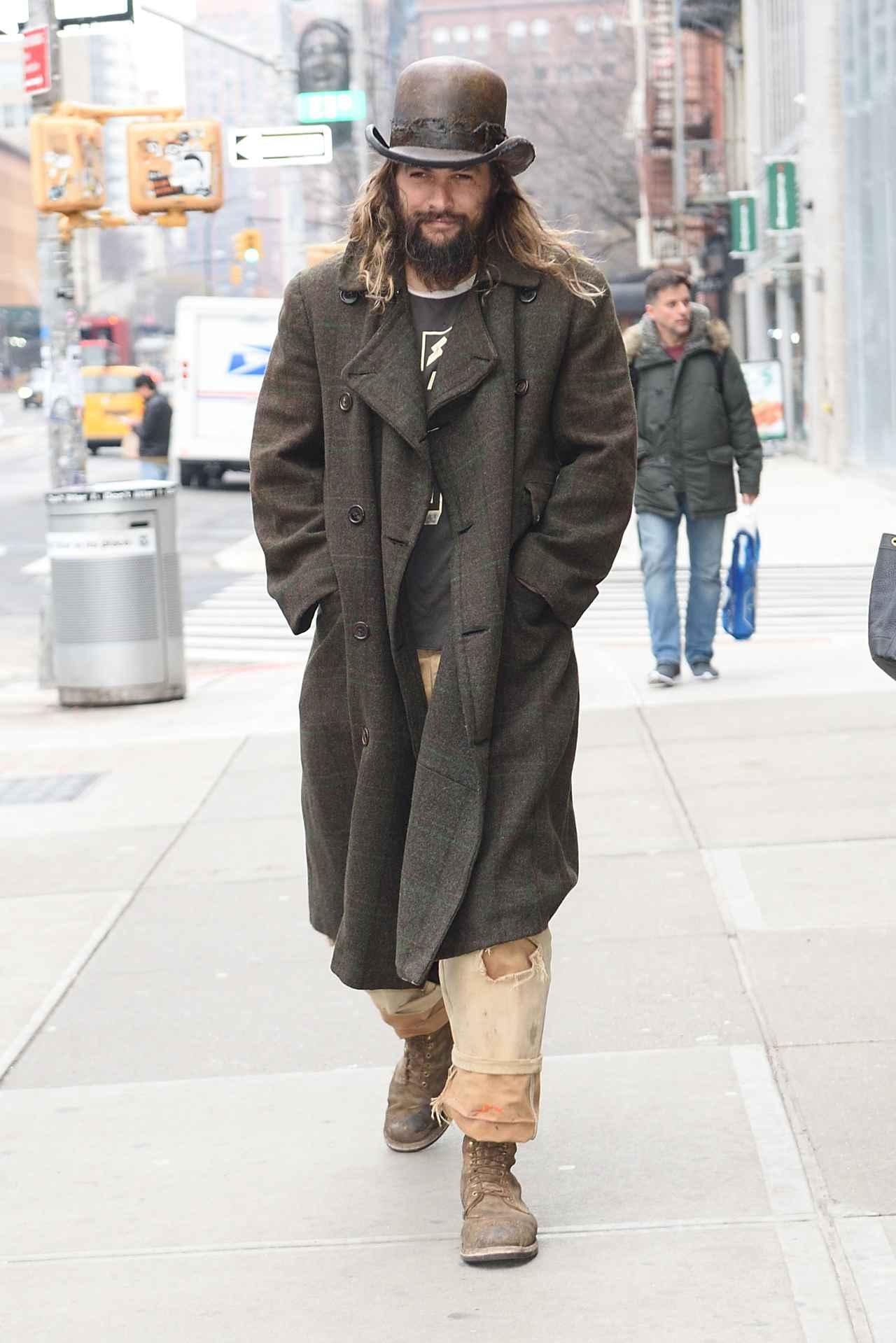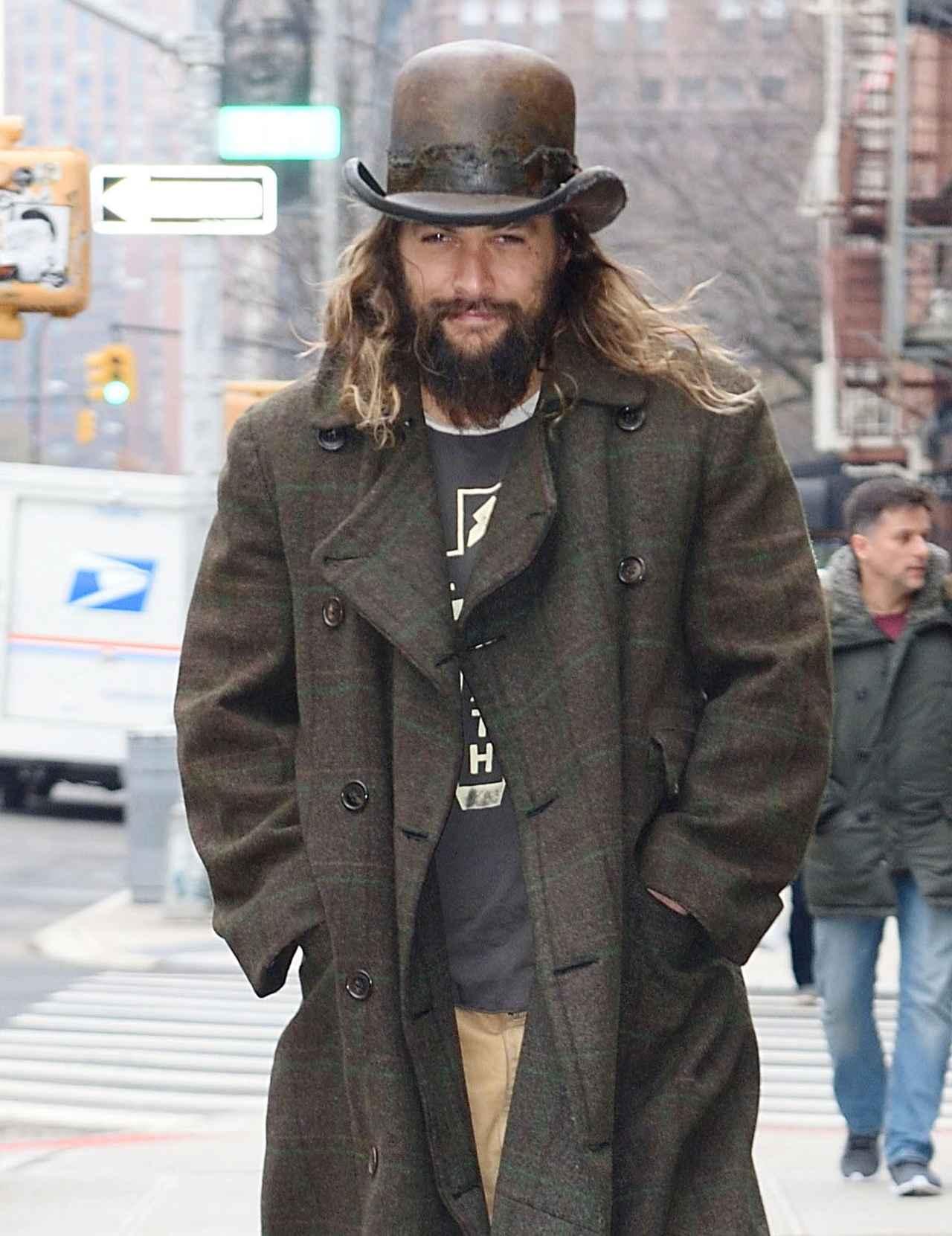 ニューヨークの街中を散歩しているのは、38歳の人気俳優ジェイソン・モモア。ハワイ出身のジェイソンだけに、普段はラフな私服が多いジェイソンが、この日はいつになくドレスアップしていた。