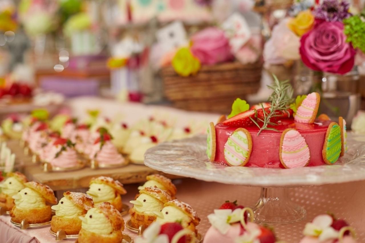 旬のフルーツ“いちご”をふんだんに使用したタルトやショートケーキ、ロールケーキ、ゼリー、プチシュークリーム、ムース、シフォンケーキに加え、生命の始まりと豊穣の象徴である“卵”や“ひよこ”、“うさぎ”をモチーフにした春の訪れを祝うイースターをイメージしたスイーツなど、約20種類がズラリ。
