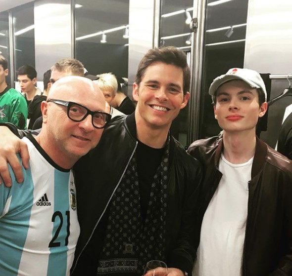 バックステージで、デザイナーのドメニコ・ドルチェと一緒に撮影するジェームズ&ジャック親子。©instagram/james_marsden