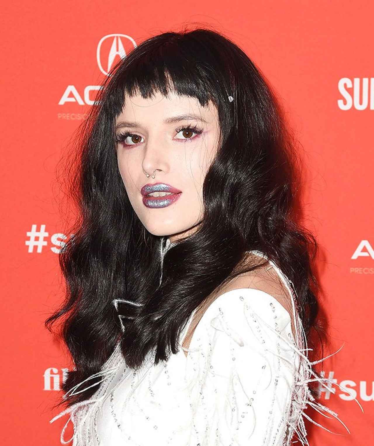 これまでさまざまな鮮やかカラーに髪を染めてきたベラは、ここへ来て心機一転黒髪に。大胆なカラーチェンジに合わせて、前髪もジグザグのベビー・バングスに。