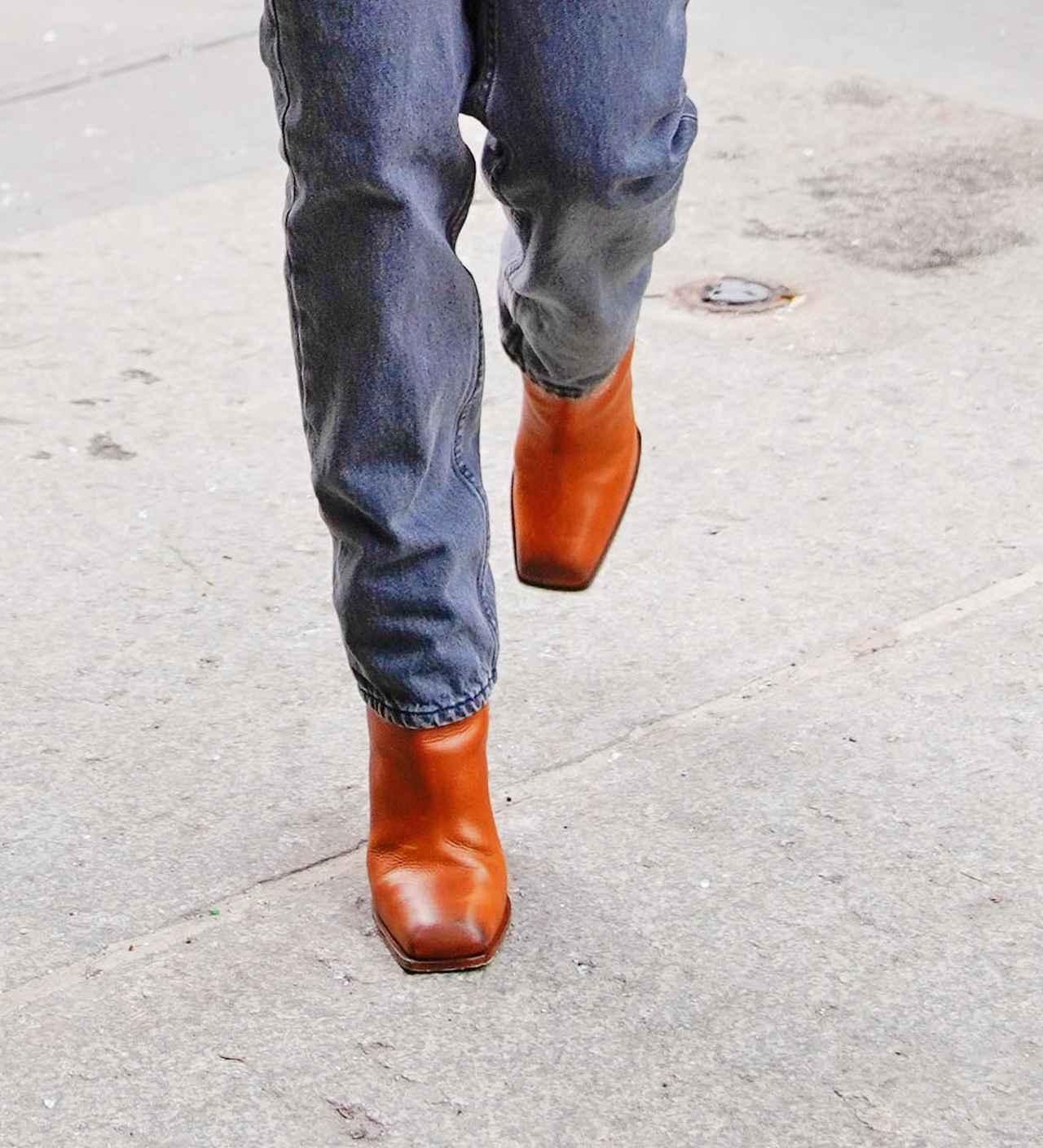 私服に定評があるケンダルは、足元はカジュアルには転ばせず、選んだのはウエスタン調のSAINT LAURENTのレザーブーツ。あえてキャメルカラーを投入することで、変化球が効いた上級なカラーリングに。