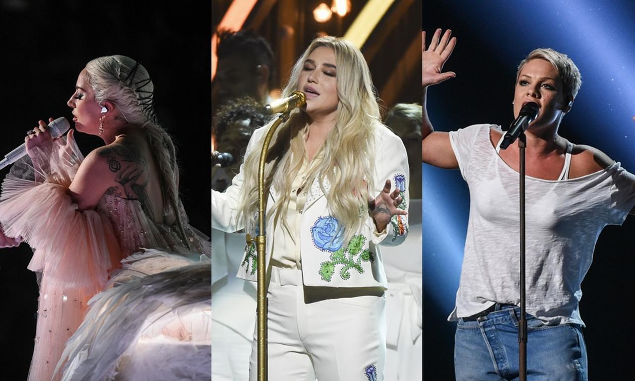 ポップ部門「最優秀ポップ・パフォーマンス賞(ソロ)」にノミネートされ、授与式ではパフォーマンスを披露したレディー・ガガ、ケシャ、ピンク。