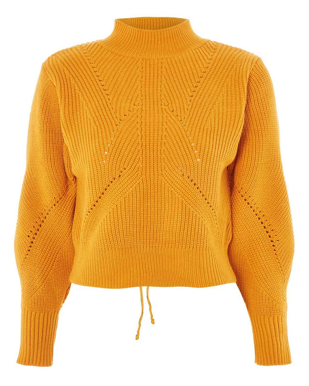 背中にレースアップ・デザインが施されたこのクロップト丈にニットは、ファストファッション・ブランド、TOPSHOP(トップショップ)のもの。