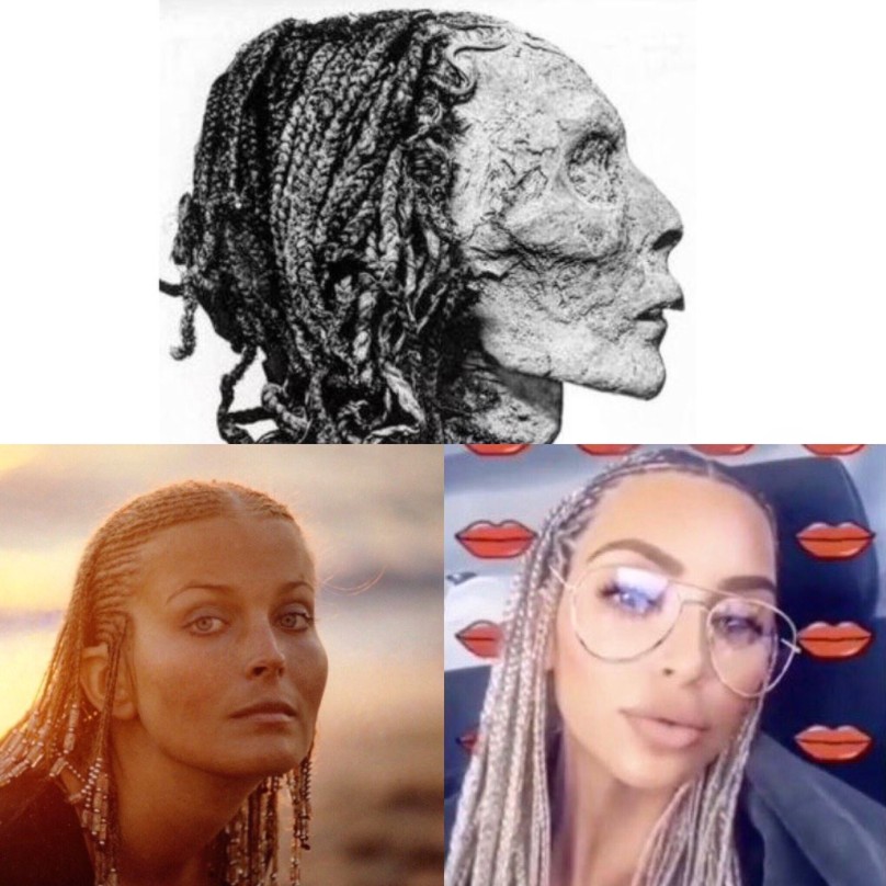 この髪型は、もとを辿れば、黒人女性や男性たちの定番ヘアとなるずっと以前の、古代エジプトの女性に由来したものだと主張した。