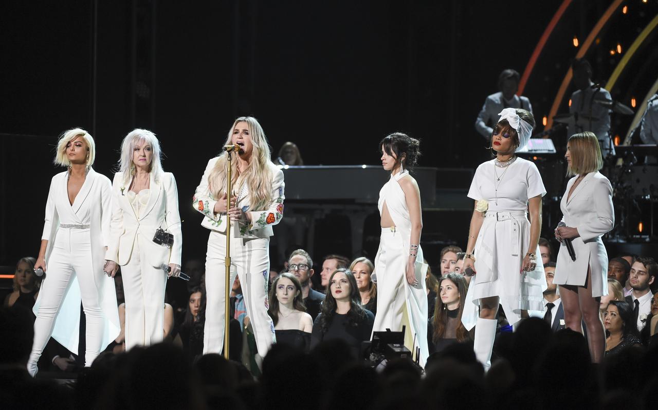 グラミー賞でシンディ・ローパーらと一緒にステージに上がり、性的被害を訴えたケシャのパフォーマンスをサポート。