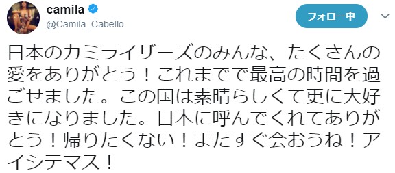 番組出演後、日本のみんなに感謝の気持ちを伝えたいからという本人の希望で、スタッフに手伝ってもらい日本語でツイート。その後、帰国の途についた。