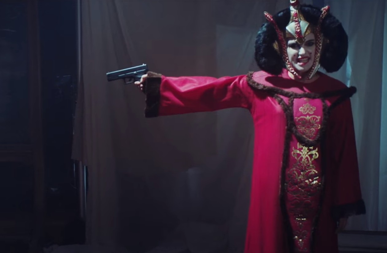 これに対して、『スター・ウォーズ』で演じたアミダラ王女役に扮したナタリーが挑発的な態度のラップで対抗した。