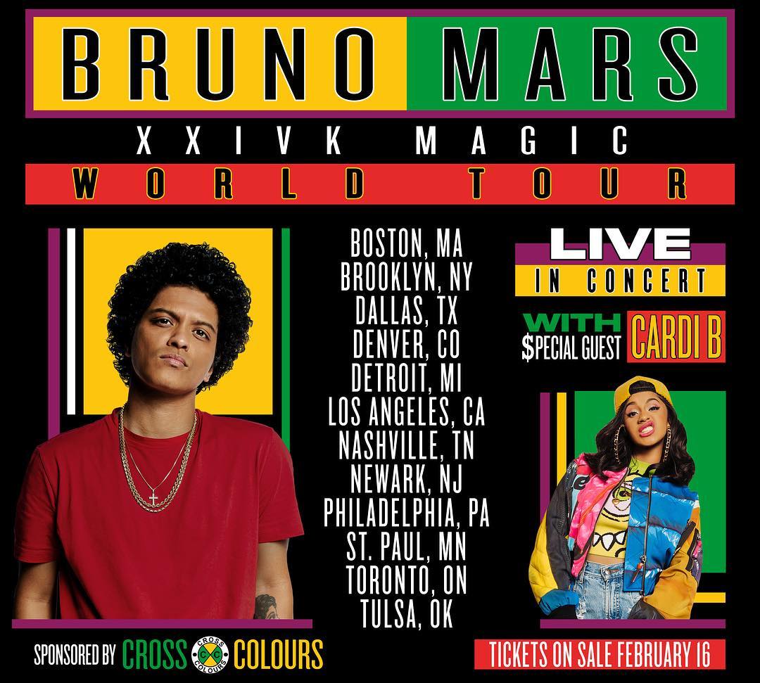 現在ワールドツアー「24Kマジック・ワールド・ツアー」の真っ只のブルーノが、同ツアーのファイナルとなる北米ツアーに、カーディが参戦することを発表。