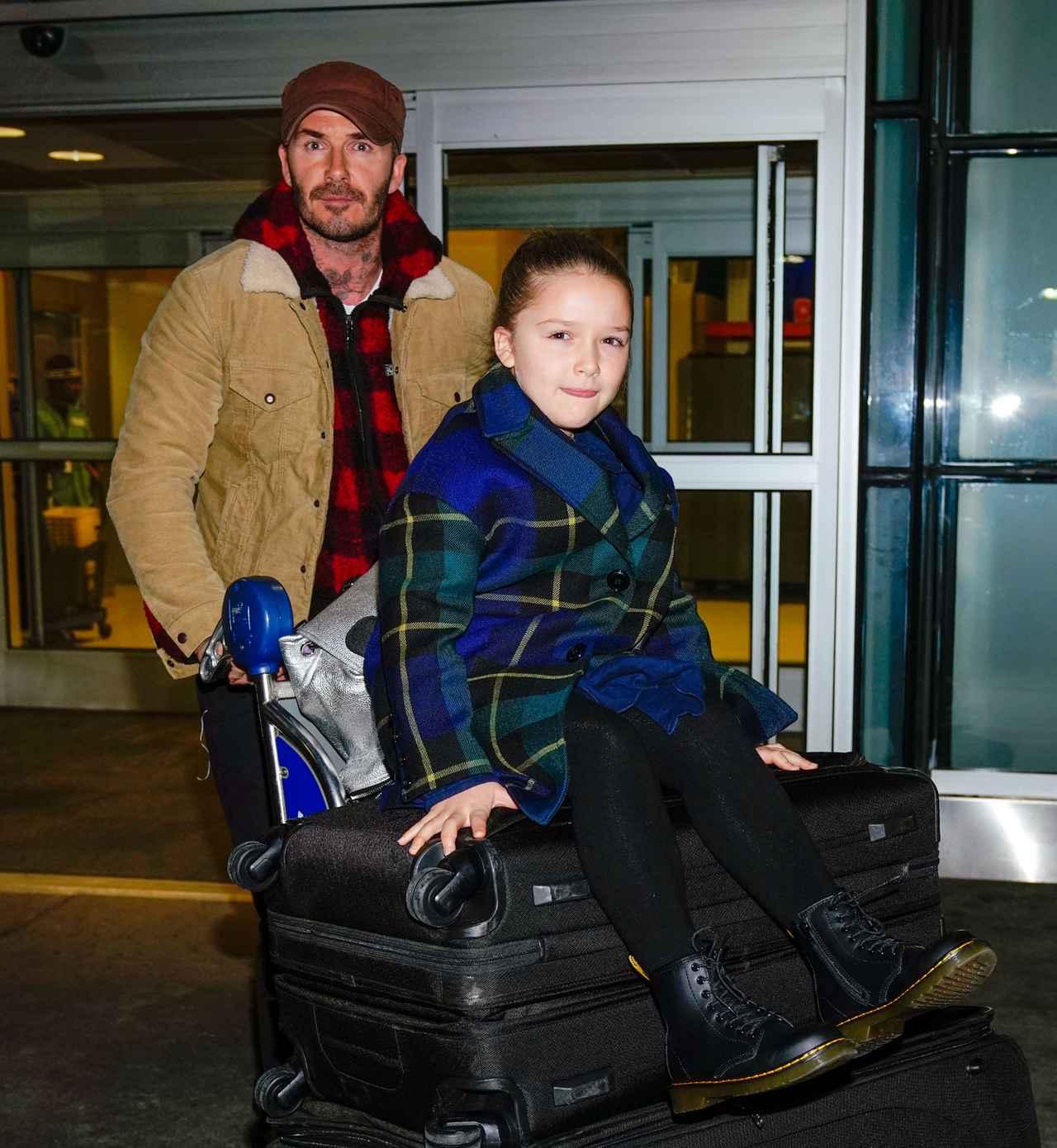 大きなスーツケースとハーパーちゃんを押しながらJFK空港に到着したデヴィッド。