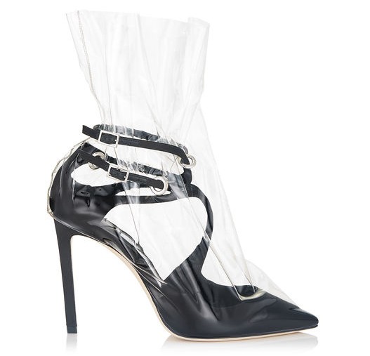 華奢なラインのストラップパンプスに、オフ・ホワイトらしい大胆なビニール素材でラッピングされた、ラグジュアリーとストリートがミックスされたパンプスに。