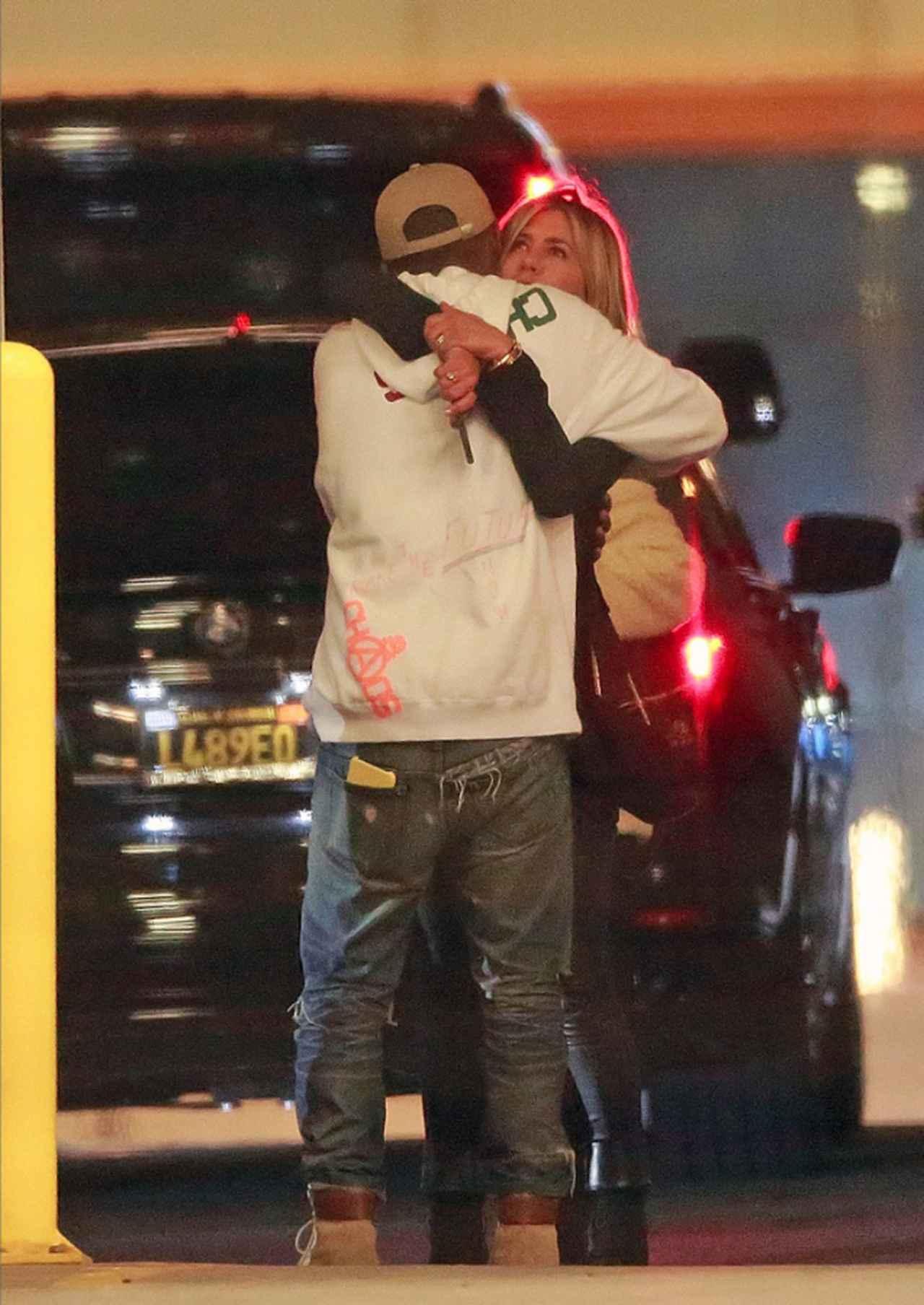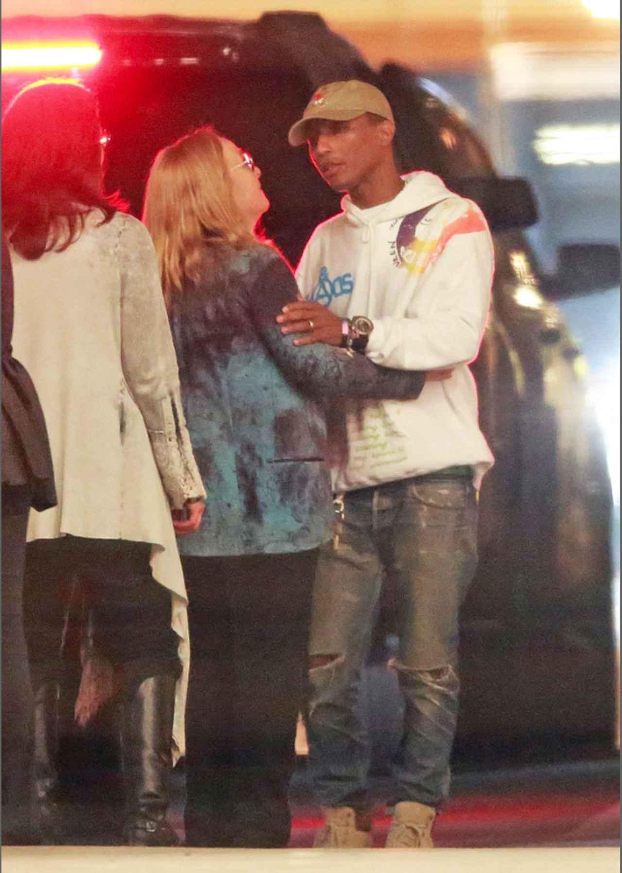 友人のシンガー、ファレルとギューっとハグして挨拶したジェニファー。
