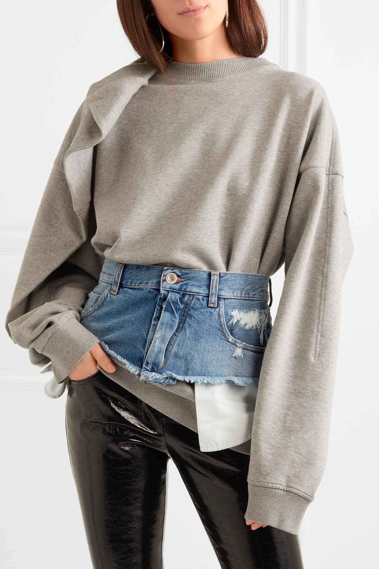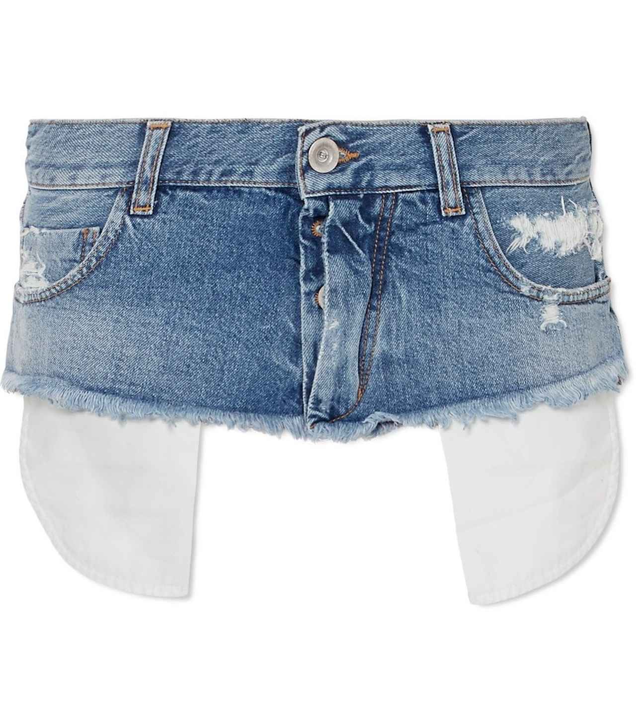 ジーンズのウェスト部分のみをざっくりとカットしただけのように見えるこのアイテムは、新進気鋭のフランス人デザイナーのベン・タバニティが手がけるブランドUnravel(アンレーベル)のもの。
