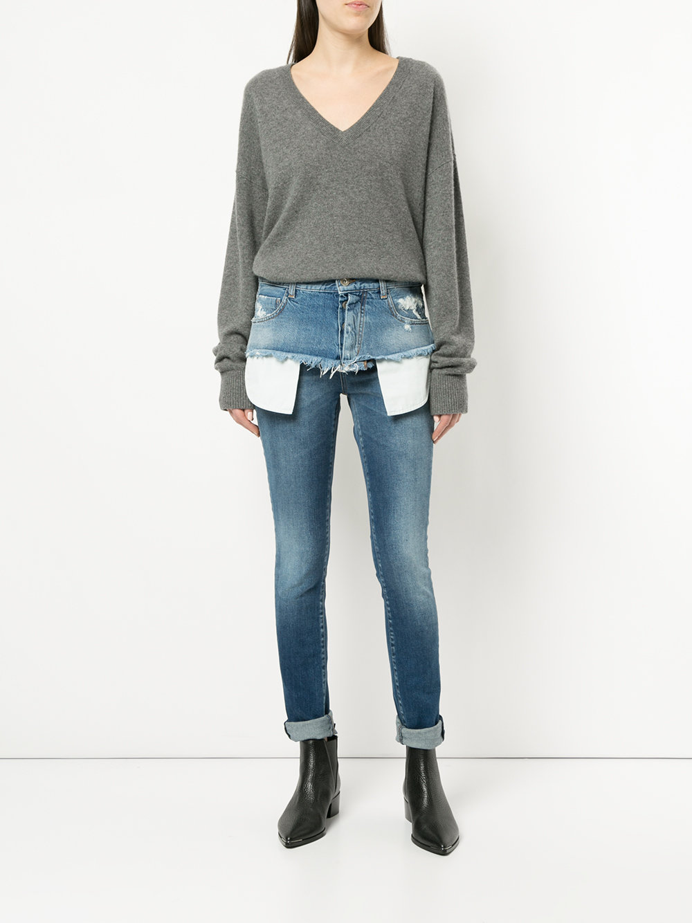 ちなみにスキニーデニムと重ね着けすると、こうなる。
