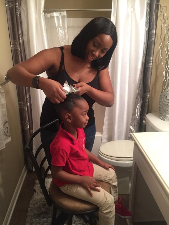 アシュリーは娘を鏡の前に座らせ、もらったヘアアクセで大変身させた。