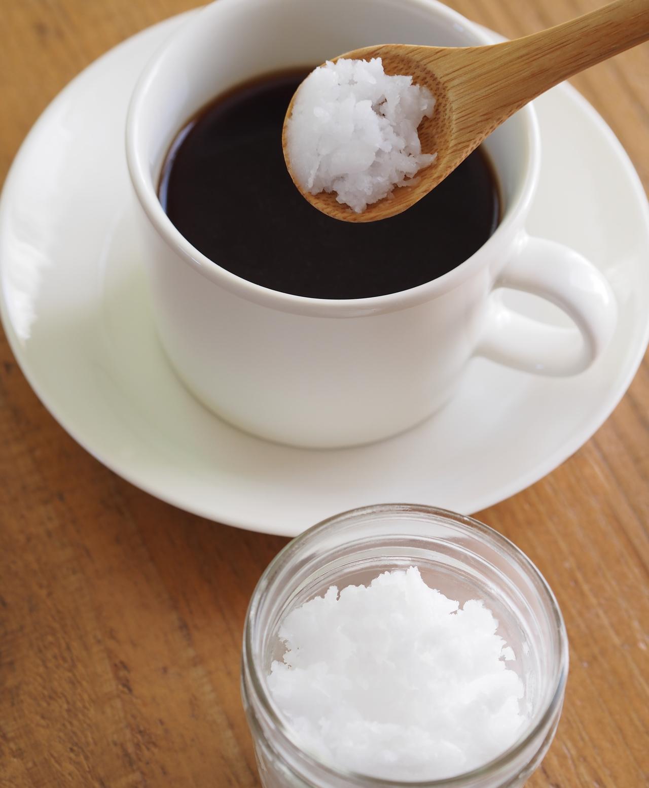 多くのセレブたちが取り入れ、ダイエットや免疫力向上に効果的だと話題になった「ココナッツオイル」は、実はコーヒーにひとさじ入れるのも人気のとり方。とくにオフィスなどの働く場面では、ココナッツオイルに含まれる中鎖脂肪酸(MCT)をコーヒーと一緒にとることが脳の活性化につながり、仕事パフォーマンス力が上がると言われている。