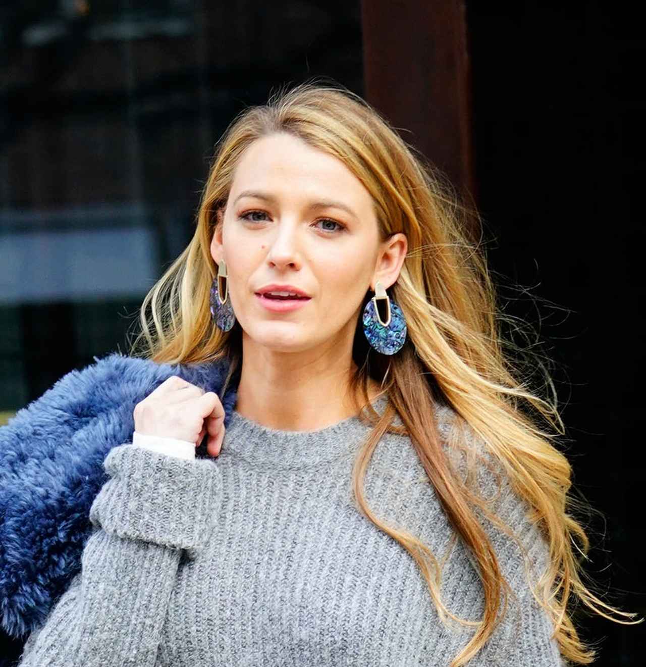 女優のブレイク・ライヴリーが、冬でも生脚を披露したニットワンピコーデを見せた。