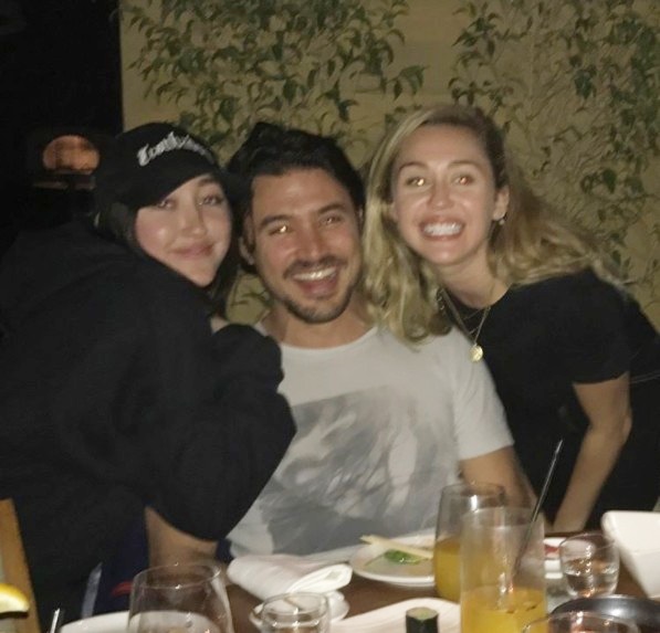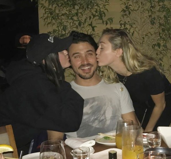 ノアとマイリーに挟まれて頬にキスされて、まんざらでもなさそうなヤニ。