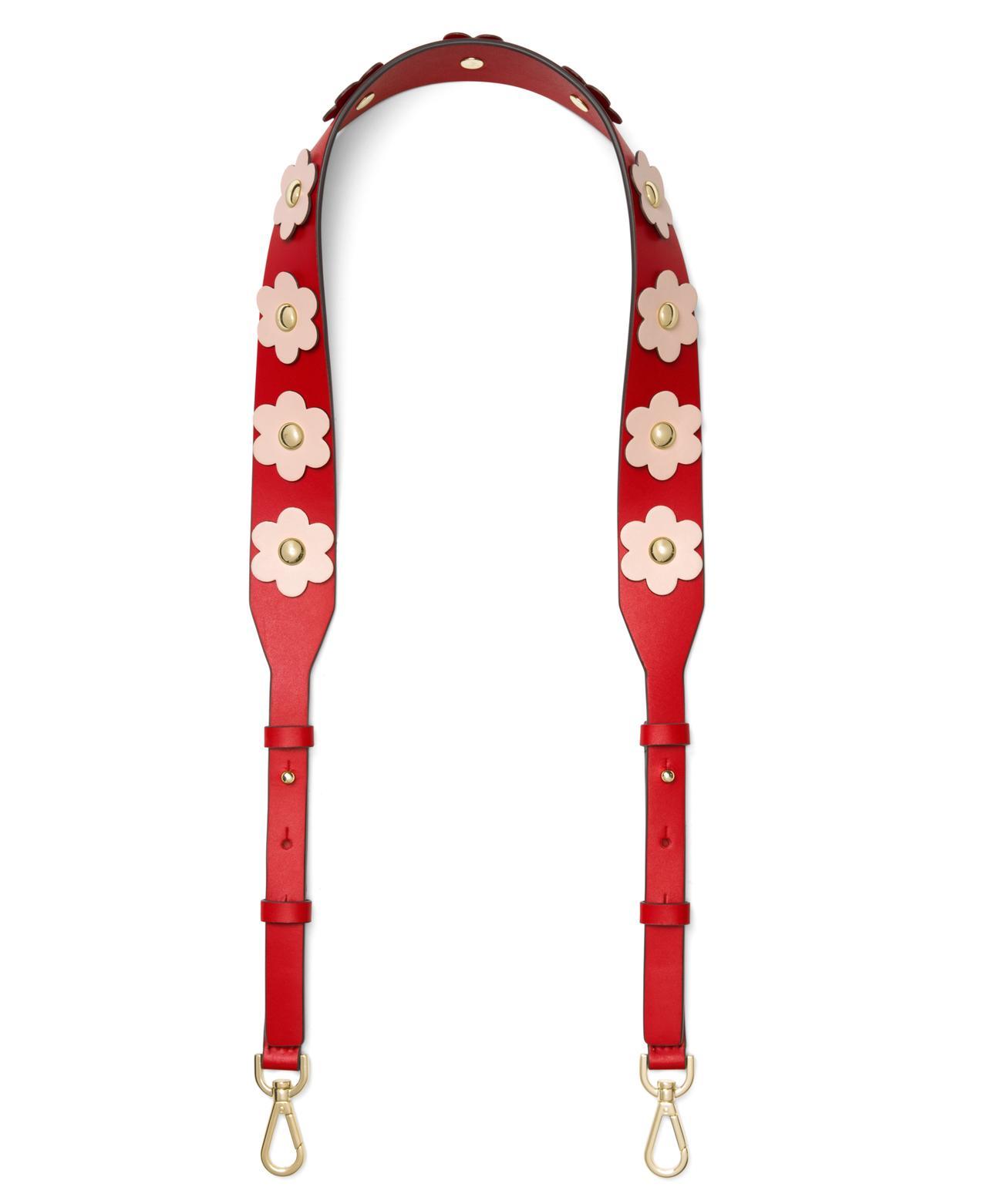 ピンクのレザーのフラワーが立体的なアクセントになった、高級感がありながらキュートなストラップは、手持ちのバッグにつけるだけで表情が変わるファッショナブルなアイテム。