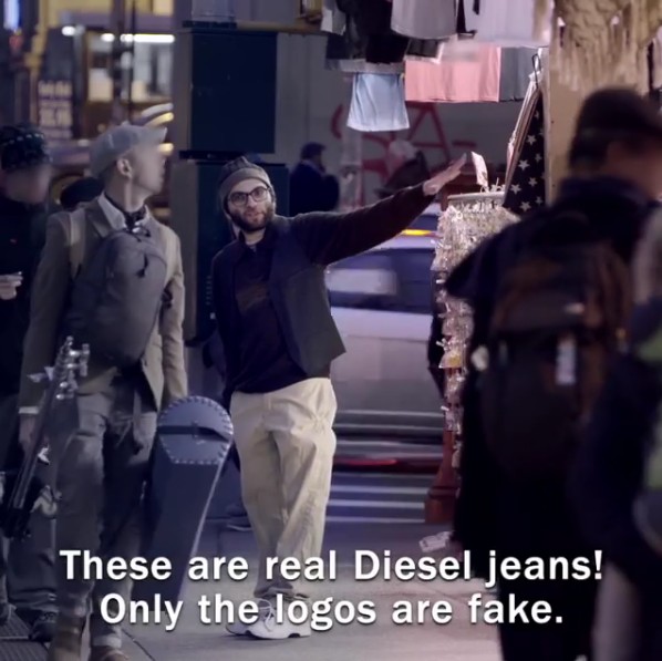 突如ニューヨークの街中に登場したディーゼル(Diesel)の偽物ブランド「Deisel」。その店は、街中にある数々の露天と肩を並べており、明らかに怪しそうな雰囲気が漂っている。