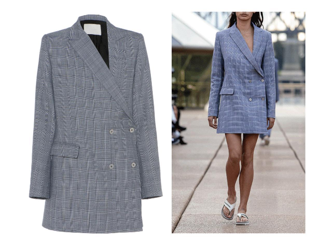 このトレンドを受けて、各ブランドが“ブレザードレス”と名付けて一枚で着用できるように販売したアイテムも登場している。