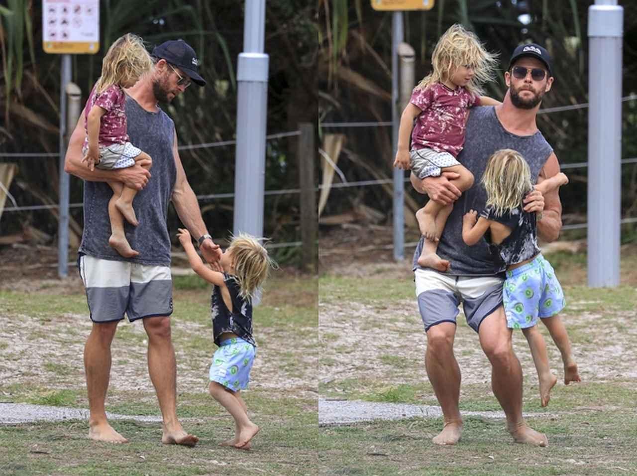 映画『アベンジャーズ』シリーズの俳優クリス・ヘムズワースが、休日にイクメンぶりを発揮する姿を激写した。