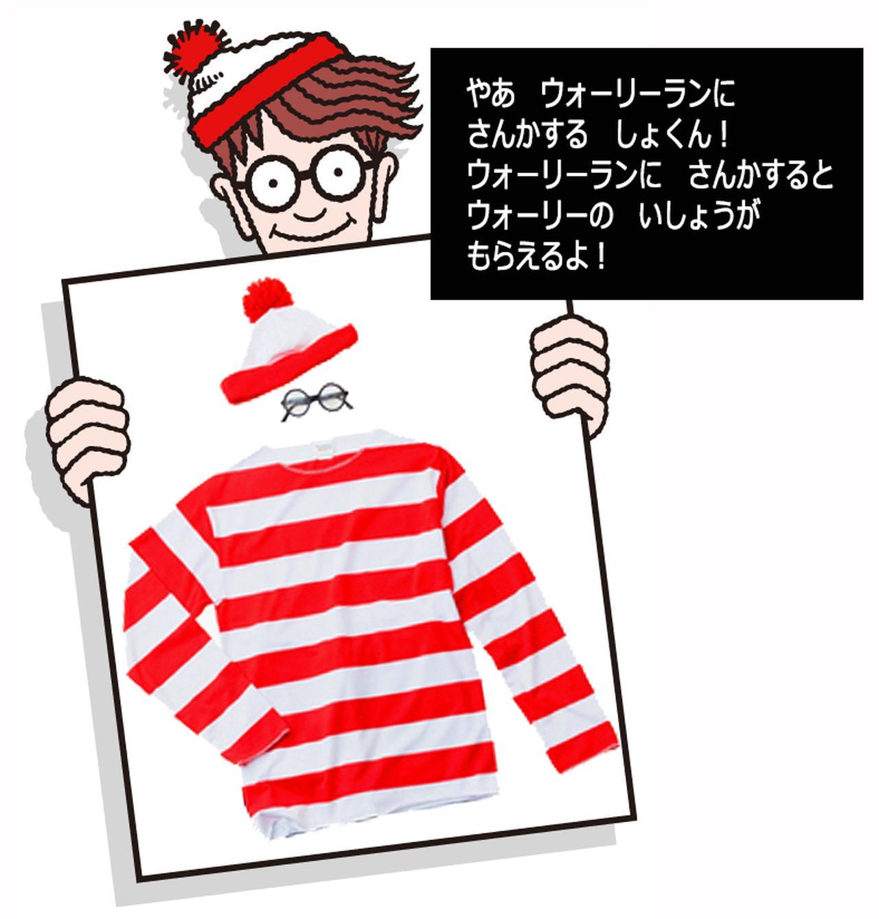 「ウォーリラン」は絵本キャラクター『ウォーリーをさがせ!』のコスチュームで参加する集団仮装イベントで、すでに東京、大阪、愛知、新潟、宮城で開催されており、累計参加者数約15,000人を動員している人気のイベント。そして今回は滋賀で開催される。