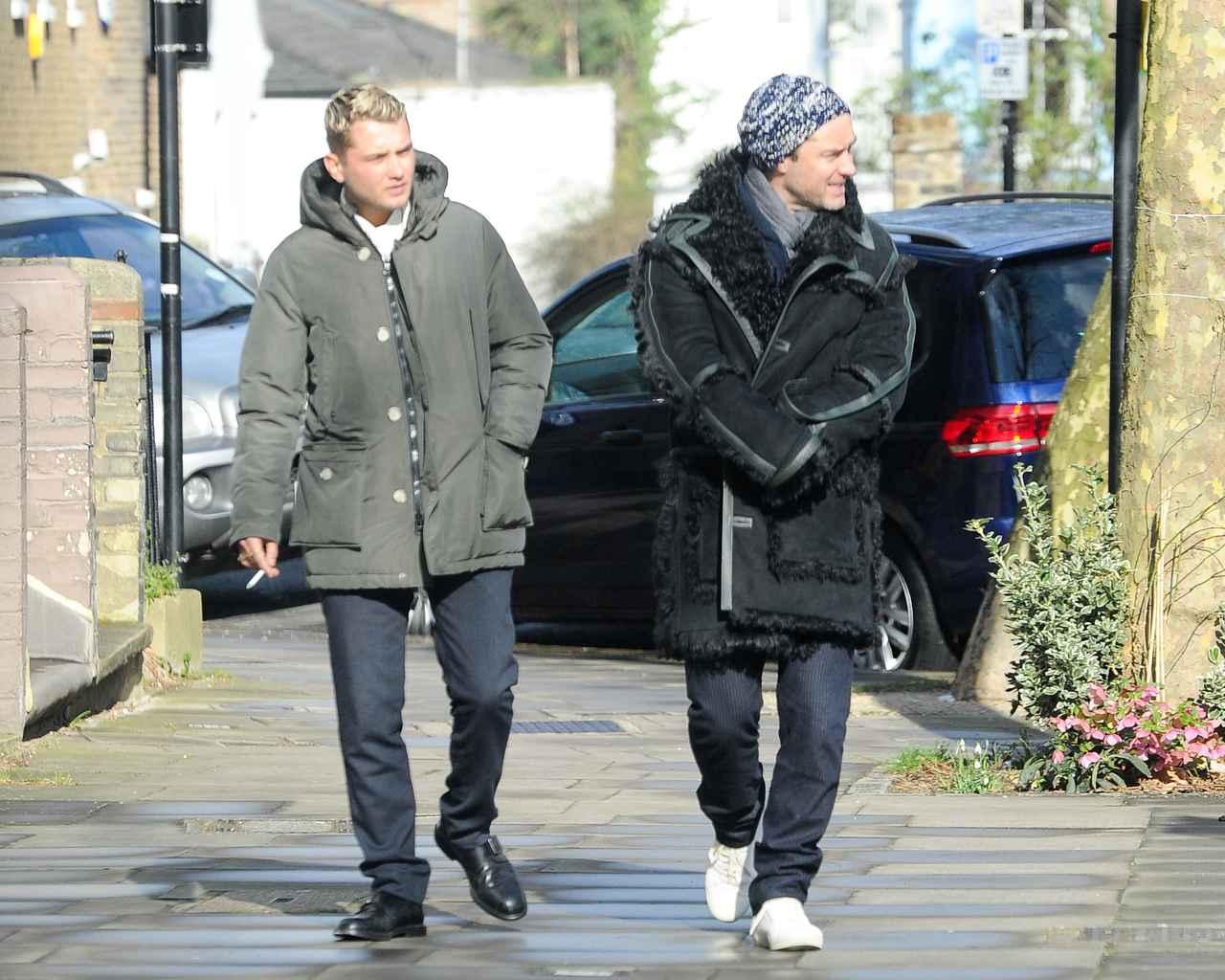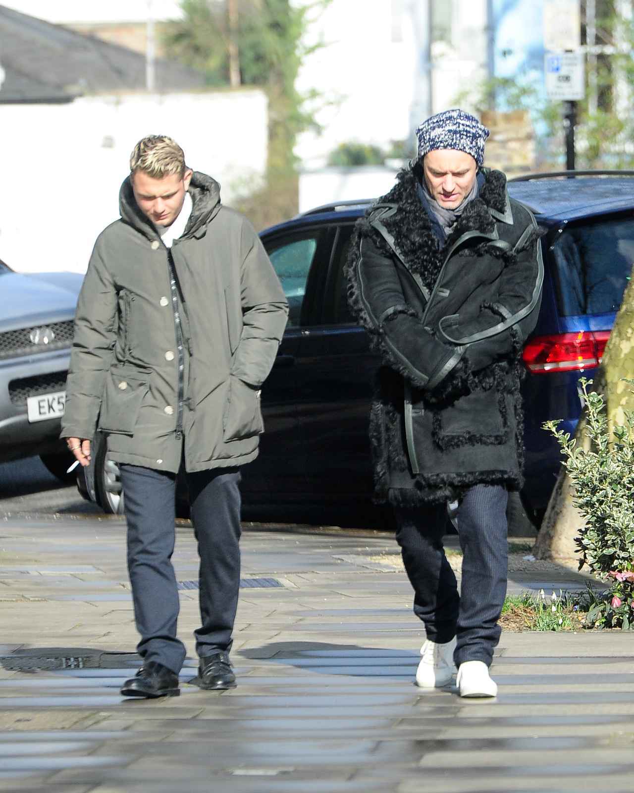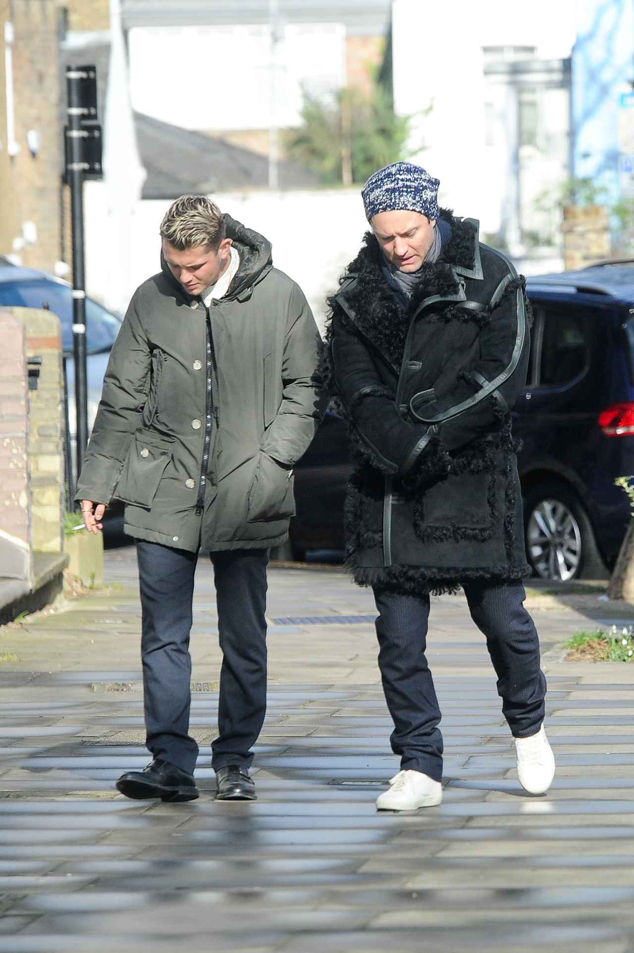 ロンドンにいる人気俳優のジュード・ロウ(45)と息子でモデル兼バンドマンのラファティ・ロウ(21)の姿をキャッチ。