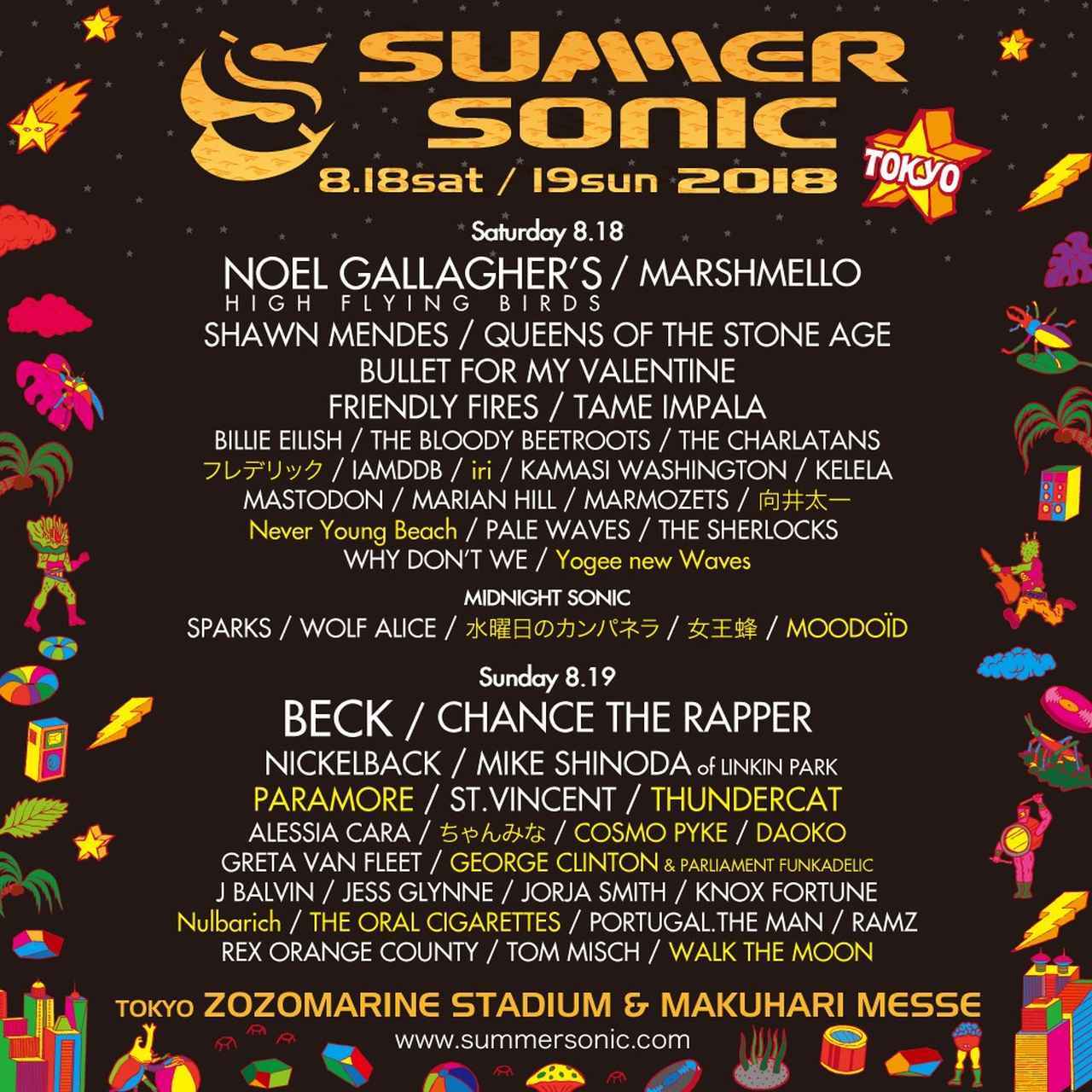 8月18日、19日に開催される都市型フェス「サマーソニック2018」の出演アーティスト第4弾が発表。また、アーティストが出演する日程も発表された.