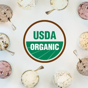 カップ以外に、有機小麦粉、有機きび糖、有機バニラエッセンスをベースに焼き上げた自慢のホームメイドワッフルコーンもあり、とことんオーガニックにこだわっている。
