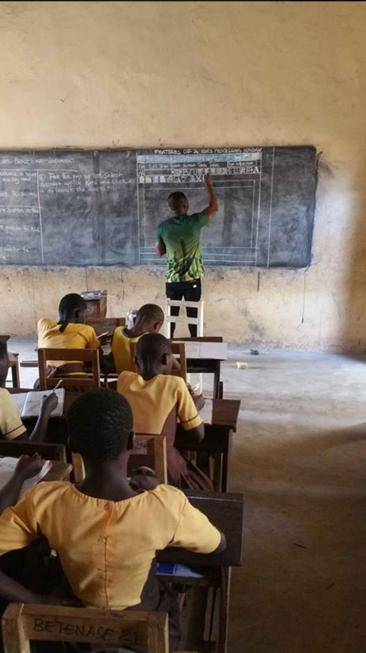 オウォラという男性は、ガーナの学校で情報通信技術を教えている。そんな彼の授業ではあるものが黒板に再現される。それは、パソコンを使ったことがある人なら1度は見たことのあるマイクロソフトのワードの画面。