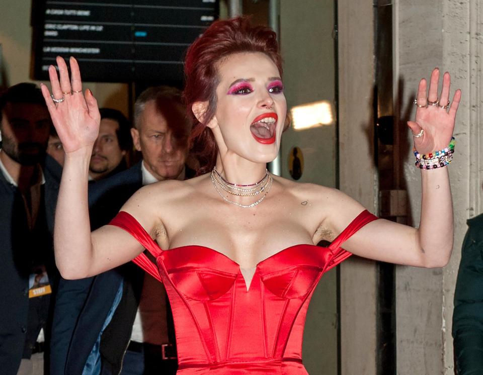 女優のベラ・ソーンが主演映画のプレミアで美しいドレス姿を披露するも、未処理のわき毛に注目を奪われることに…。