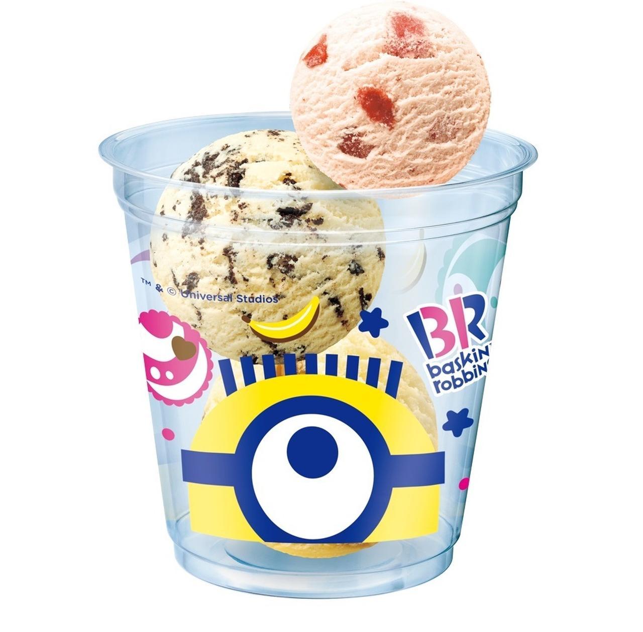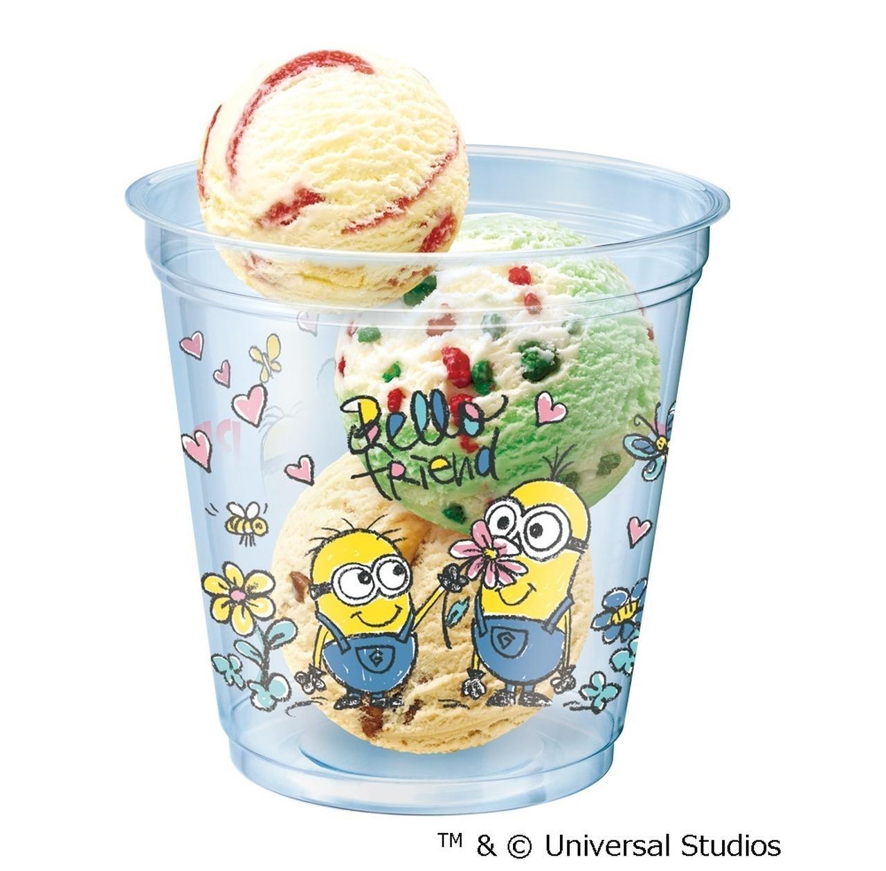 今回の「MINI ON キャンペーン(ミニ オン キャンペーン)」では、スモールダブルを購入するとお好きなアイスクリーム(ポップスクープ)を1個プレゼントという、とってもお得なキャンペーン。カワイすぎる“ミニオン”クリアカップで提供される。
