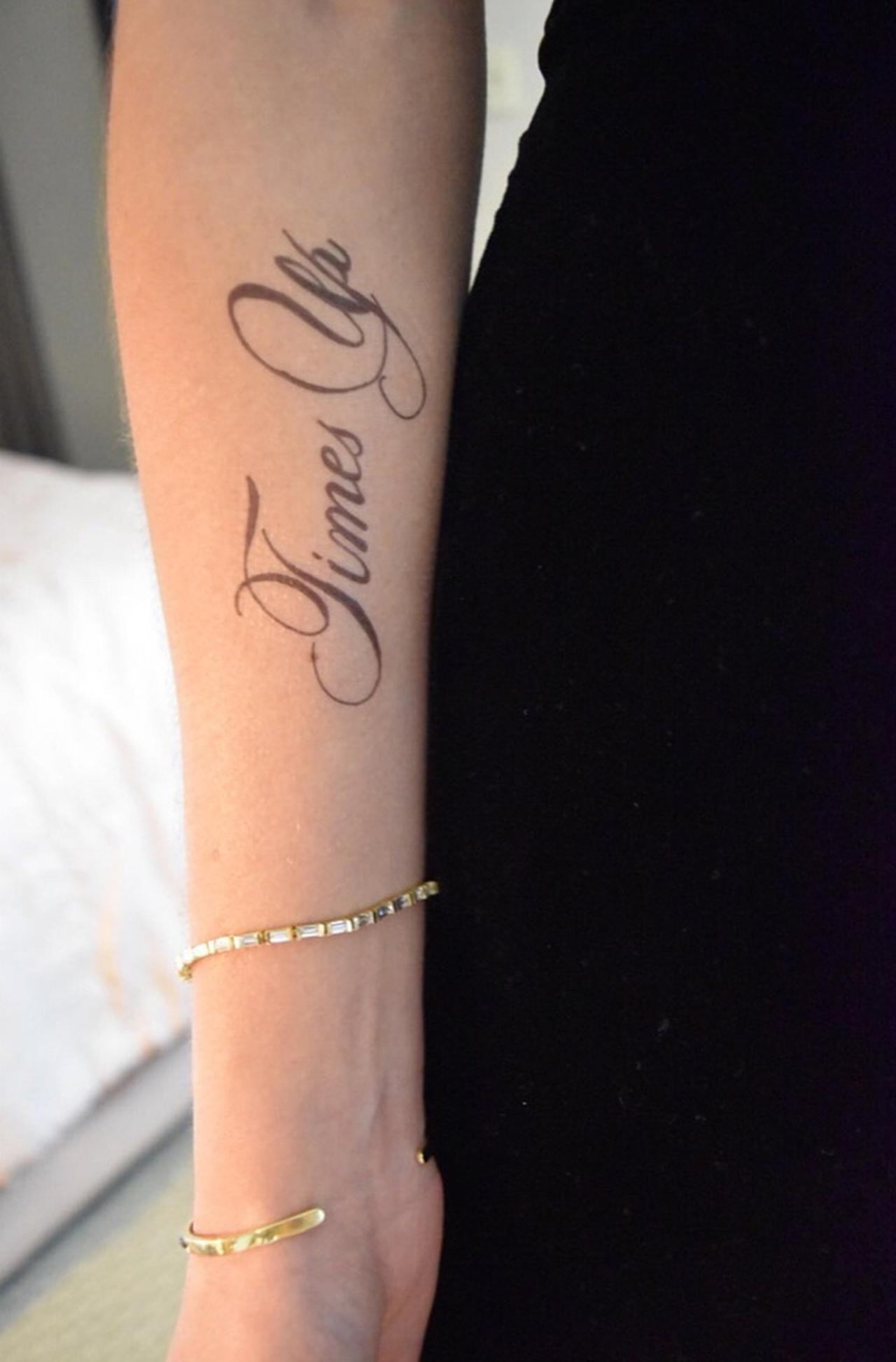 そんな華やかな場にエマが選んだのは、ラルフ・ローレンの美しいブラックドレス。そして、この日のスタイルでもっとも注目されたのはエマの右腕。タトゥーシールを貼ったその腕に大きく書かれていたのは、「Time’s Up」の文字。エマは、セクハラ撲滅を訴える運動「Time’s Up」の文字を腕に記して登場した。