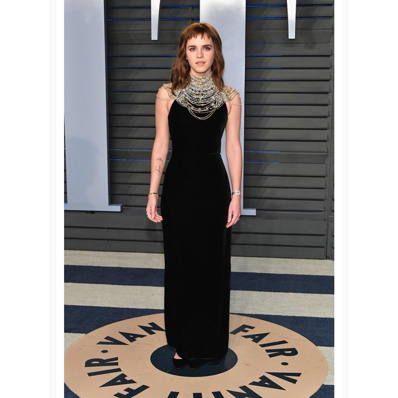 人気女優のエマ・ワトソンが、アカデミー賞授賞式のアフターパーティに参加。エマは、腕に大きなタトゥーシールを貼って登場した。
