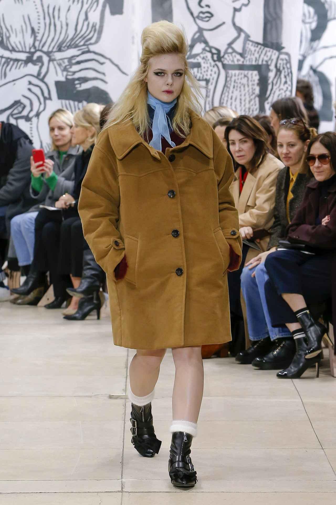 女優のエル・ファニングが、miu miuの2018年秋冬コレクションでランウェイデビュー。