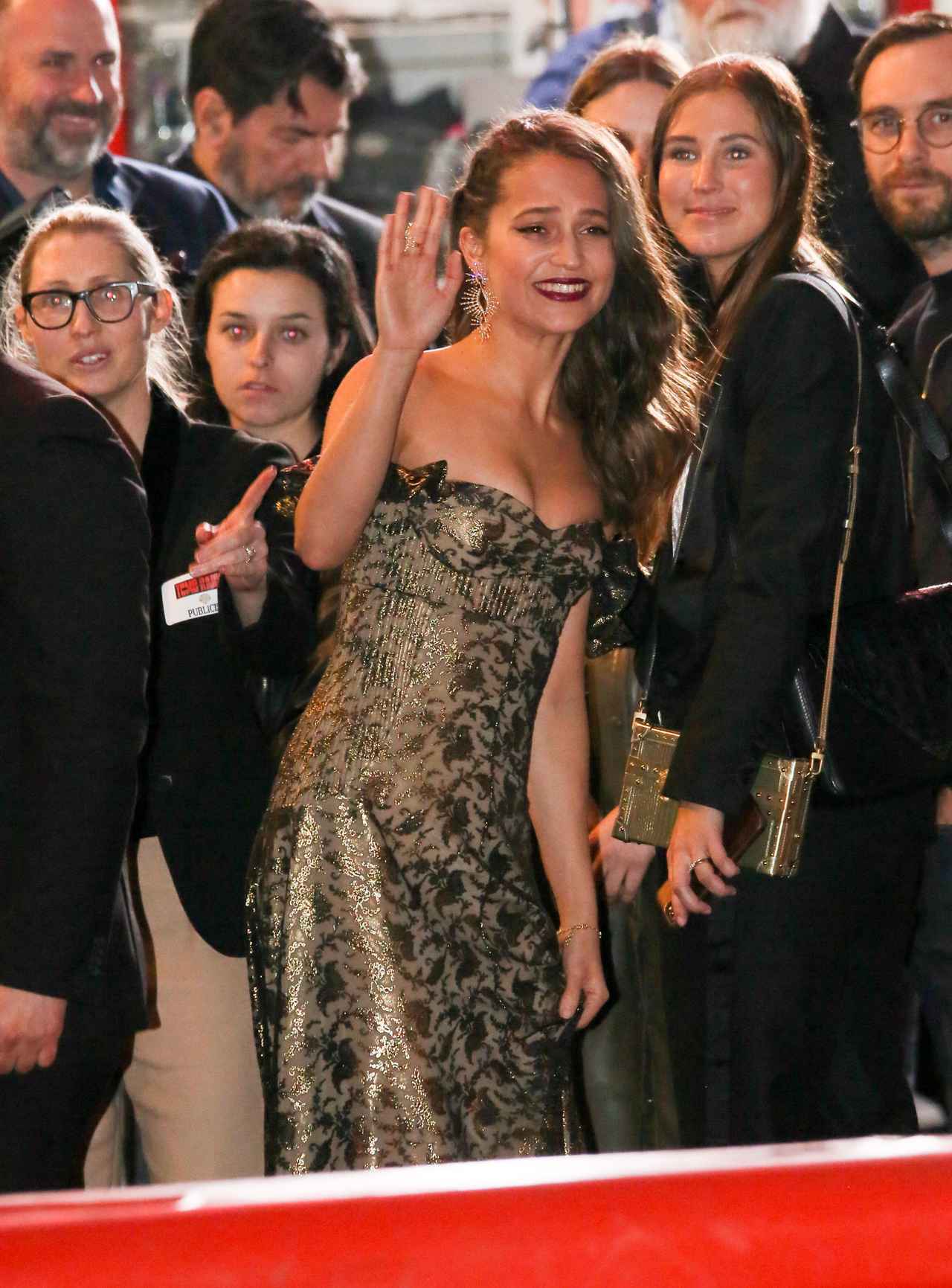 映画『トゥームレイダー ファースト・ミッション』で主演を務めるアリシア・ヴィキャンデルの、プレミアでのレッドカーペットドレス姿が美しい!